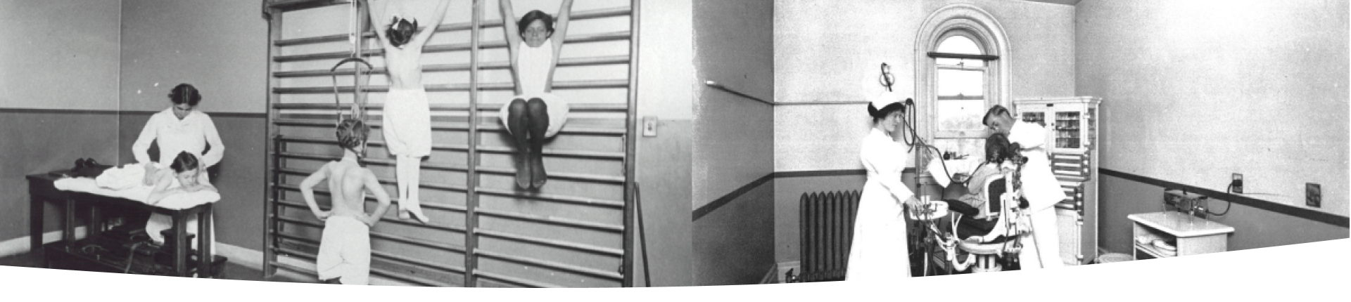 A precursor to physiotherapy was the use of massage and gymnastics. The hospital employed a skilled masseuse to successfully treat children with infantile paralysis, rheumatism, and fractures and weakened muscles. In addition, an in-house gym had special equipment where children with spinal and other injuries went to instructor-led classes to receive therapy to improve their flexibility and movement.