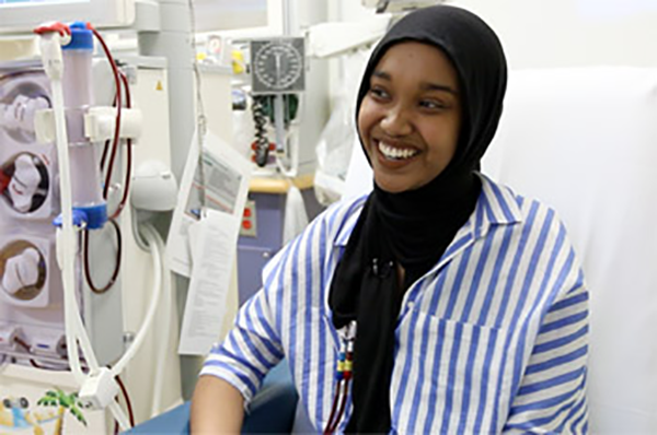 Sixteen year old Ugbad Ali was diagnosed with end stage kidney disease in April 2015. “I wasn’t feeling well. I had headaches and was throwing up. When I went to the hospital, they found that my bloodwork was out of whack.” She was at SickKids for three weeks before learning that she’d have to continue coming to the hospital multiple times a week for dialysis in order to maintain her health.