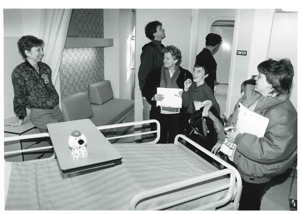 When SickKids began designing the new Patient Care Centre (now the Slaight Family Atrium) in the 1980s, parents were encouraged to offer their opinions on the plans and serve formally on hospital committees. The results of their input could be seen directly on the new inpatient units. Each unit featured single patient rooms with private washrooms, sleeping accommodations for one parent including a day bed and storage, and a playroom on each unit.