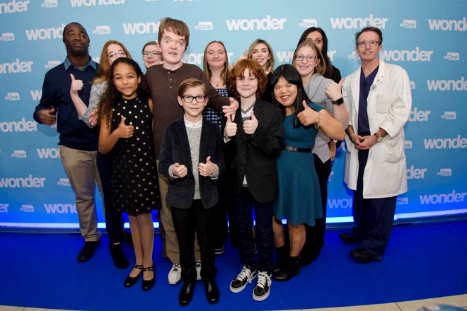 Eight current and former patients wrote to him, detailing their experiences, from all the surgeries and medical procedures to the bullying and stares from both peers and strangers. Jacob read and re-read their letters before filming difficult scenes to have a better insight into how Auggie would feel. He saved all the letters in a binder he showed to the SickKids patients when they met just over a year ago during his first visit to SickKids. Now, those same youth who helped Jacob understand his character were given a unique opportunity to see the movie come to life.