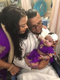 When Melinda Mahabir and her husband Kelvin S. Kerut wanted to host a religious ceremony at SickKids for their six-month-old daughter Meliyah, they turned to staff for help. Chandra Ram, Interfaith Chaplain, and Fred MacKay, Supervisor of Spiritual and Religious Care, were happy to assist.