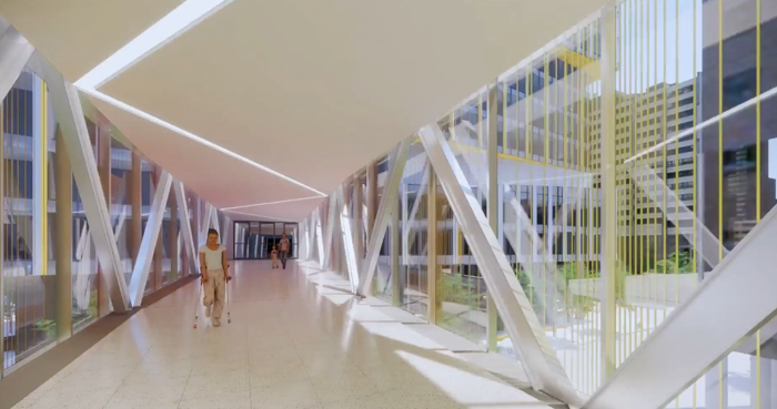 Over the past few months, crews worked to erect the new pedestrian bridge over Elizabeth St. that will connect the Atrium to our future Patient Support Centre.
