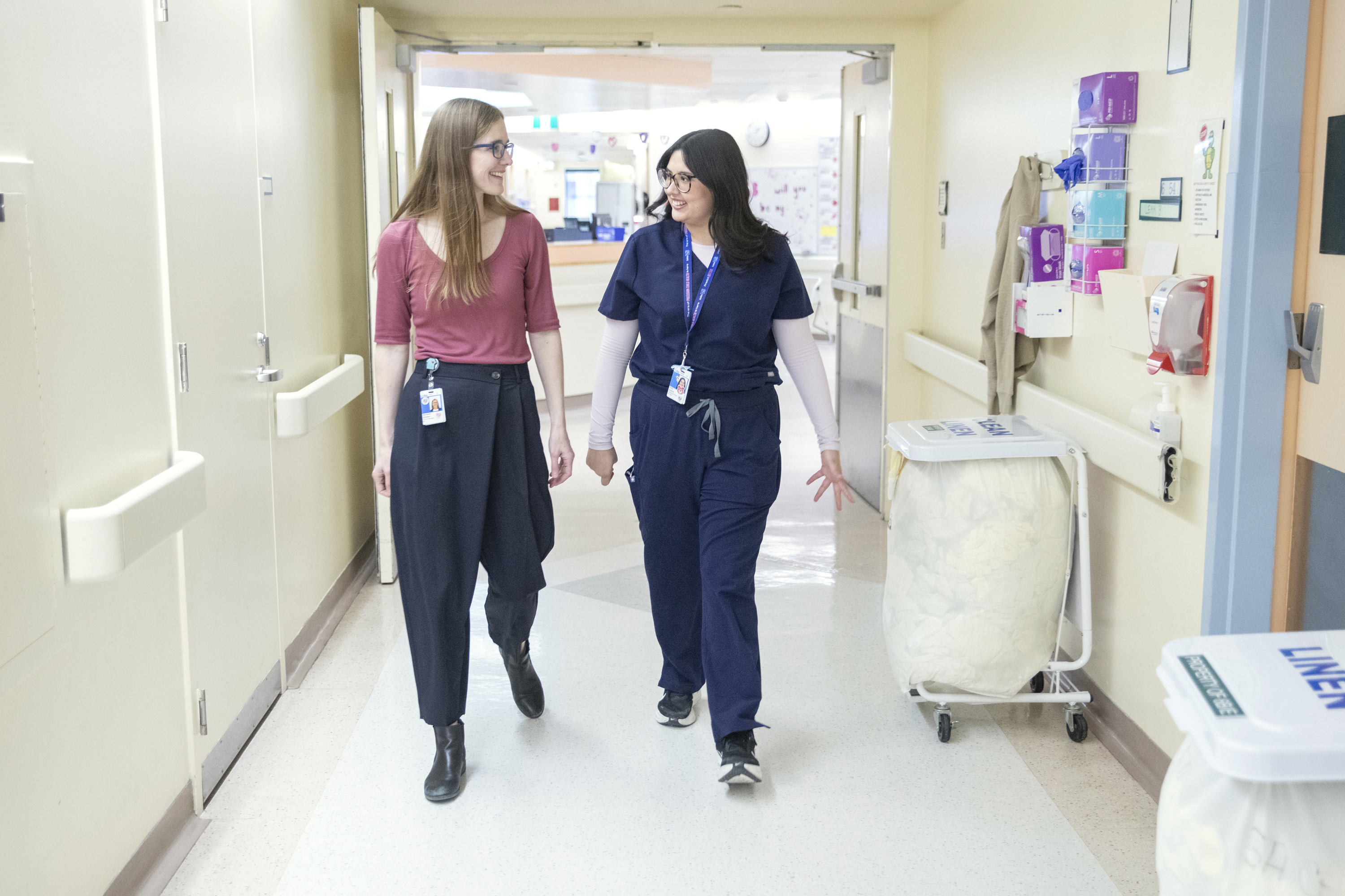 España walks with Margaret Schwan, Senior Clinical Manager on 6A, whose mentorship helped shape her transition from student to staff nurse.
