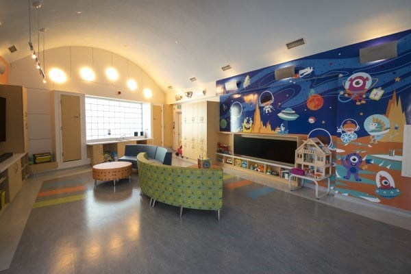 - The design of this space was drawn from first-class airline lounges and includes a number of individual ‘pods’ with custom-built privacy screens so parents or immediate caregivers can rest without distraction